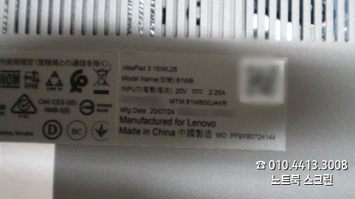수서역노트북수리 레노버 액정 교체 Lenovo ideapad 3 15IML05 81WB