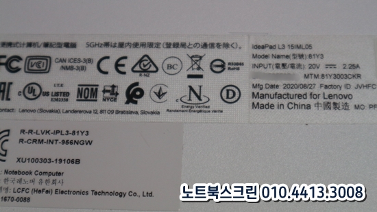 수원노트북수리 레노버 L3 15IML05 81Y3노트북수리 액정교체 화면깨짐 패널교체