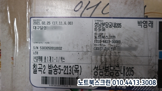[택배-수리완료] 대구광역시 달성군에서 온 삼성노트북액정수리 NT500R5H-L34S 액정화면깨짐