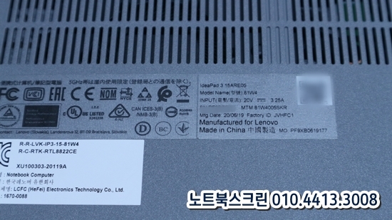 Lenovo ideapad 3 15ARE05 81W4 레노버노트북액정교체 패널교체 당일수리