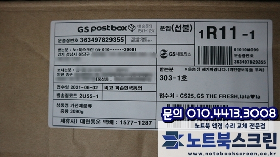 [택배-수리완료] 인천 중구 중산동 삼성노트북액정수리 NT470R5E-K02UB 화면파손 LCD패널교체