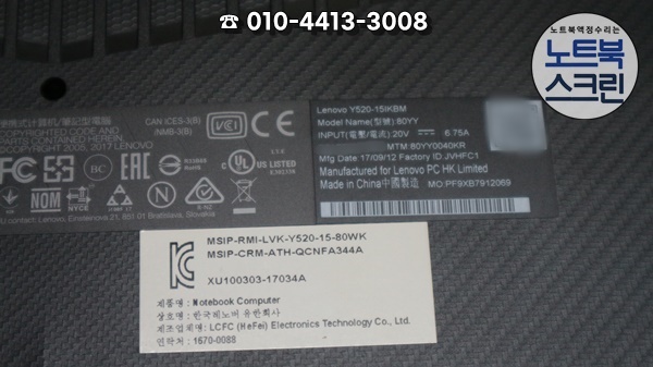 수원 영통 노트북액정수리 레노버 화면에 가로줄생김 Lenovo Y520-15IKBM 80YY