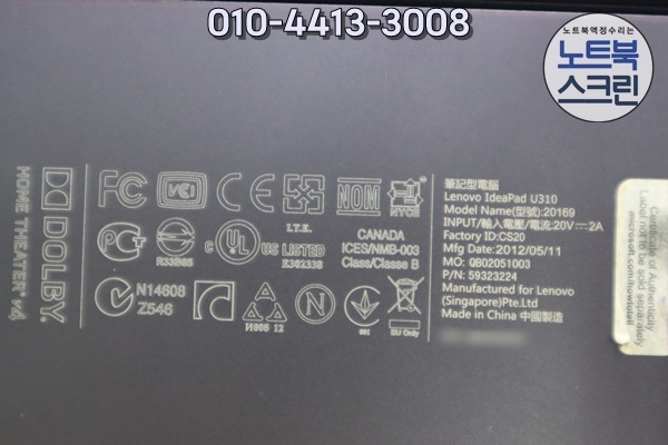 오산사설노트북수리 레노버 Lenovo ideapad U310 20169 노트북화면깨짐 당일액정교체