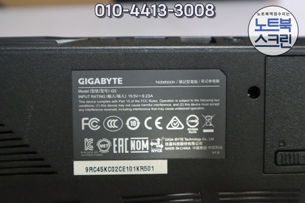 기가바이트 G5 노트북 액정화면이 깨진 상태로 노트북 스크린으로 방문해주셨어요.