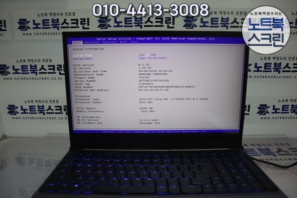 동탄 한성노트북액정수리 TFG156 노트북화면깨짐 주사율 144Hz 패널교체