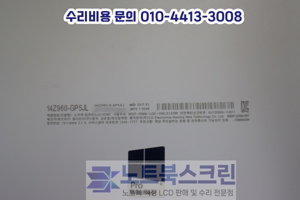 인천광역시 연수구 옥련동 LG노트북액정수리 14Z960-GP5JK 화면깨짐 패널교체