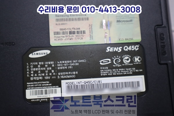 울산 울주군 두서면 삼성노트북액정수리 NT-Q45C/C181 화면깨짐 12.1패널교체