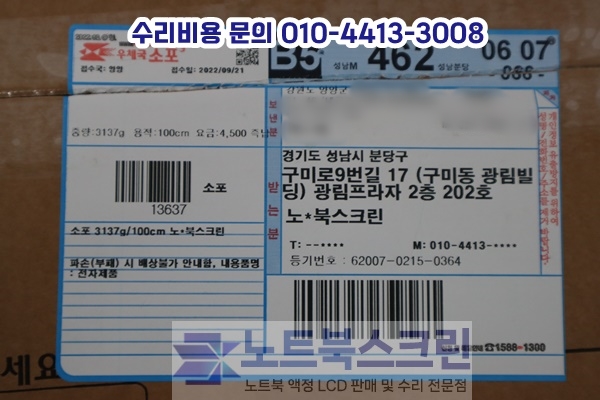 [택배-수리완료] 강원도 양양군 HP 노트북액정수리 15-cc610ms 터치스크린 액정깨짐 패널교체