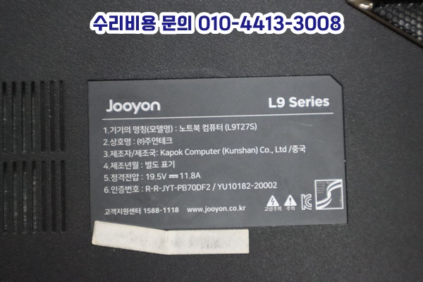 주연테크노트북액정교체 수리전문 JOOYON 리오나인 L9T27S 당일 바로 수령했어요