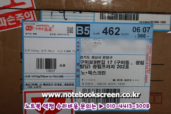 수리완료된 에이치피 노트북은 안전하게 이중포장 후 당일 택배 무료 발송해드렸습니다~!