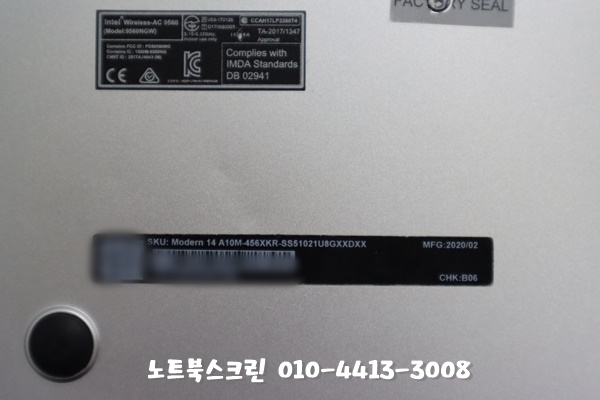 판교MSI노트북수리 Modern 14 A10M (MS-14B1) 화면물들어감 액정침수 당일수리