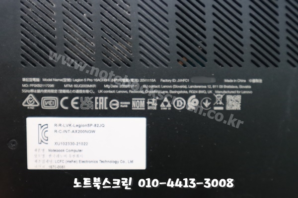 [택배-수리완료] 인천 연수구 연수동 레노버 리전노트북수리 Legion 5 pro 16ACH6H 액정화면파손