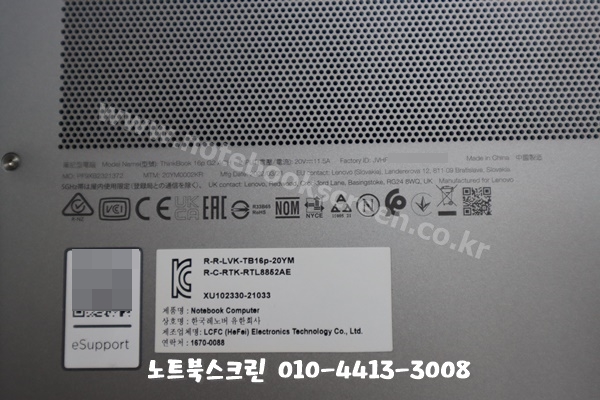 수정구 단대동 성남레노버노트북수리 ThinkBook 16p G2 ACH 화면깨짐 패널교체