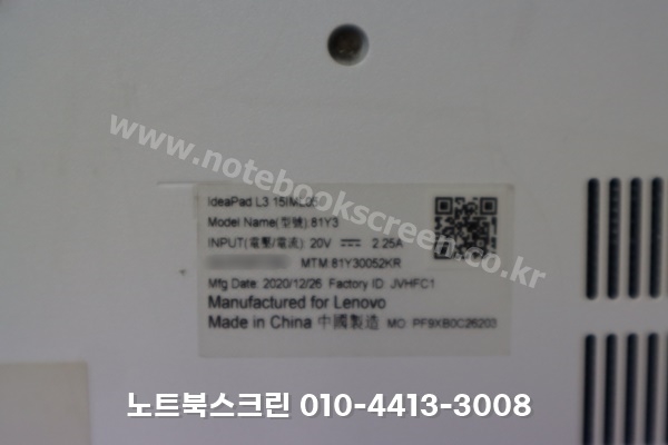 [택배-수리완료] 광주 광산구 월계동 레노버 노트북화면수리 IDEAPAD L3 15IML05 81Y3 액정깨짐 패널교체