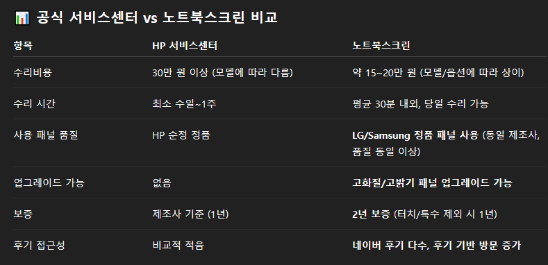 ✅ 1. 공식 HP 서비스센터에서 수리할 경우