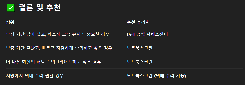 ✅ 1. Dell 공식 서비스센터에서 수리할 경우
