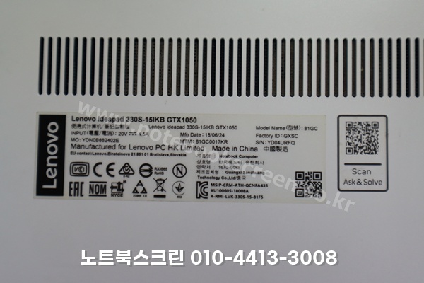 레노버 AS 사설 수리센터 성남 분당 Lenovo ideapad 330S-15IKB GTX1050 디스플레이 화면교체