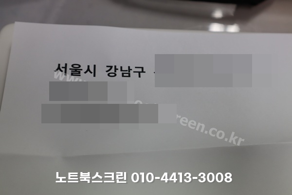 수리 완료 후 액정 후면에 노트북스크린 작업 스티커 부착