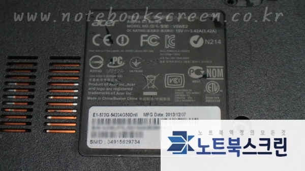 수리하게 될 에이서 노트북 모델명은 E1-572G-54204G50Dnll 입니다.